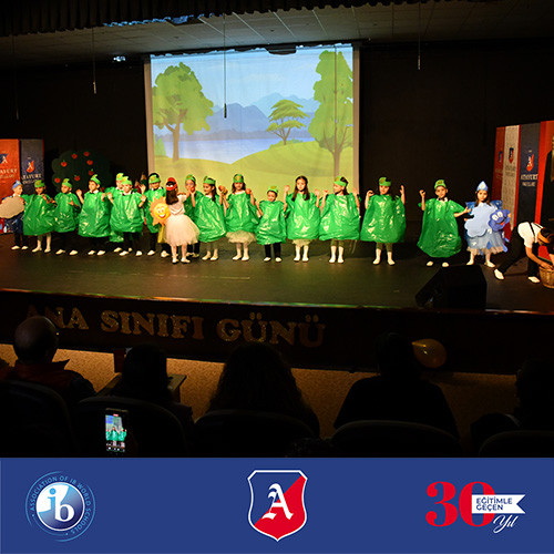 Gösterinin sonunda minikler, büyük bir ciddiyetle *"Mezuniyet Andı"*nı söylediler. Ardından hep birlikte keplerini havaya fırlatarak ilkokula ilk adımlarını attılar. 🎓✨