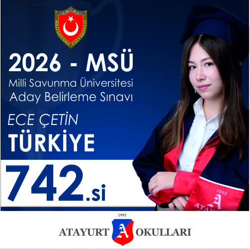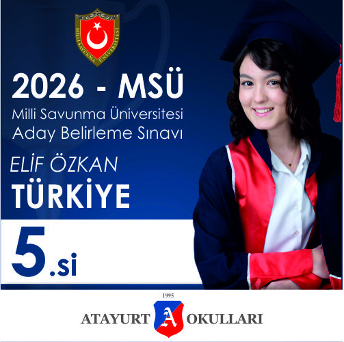 Milli Savunma Üniversitesi (MSÜ) sınav sonuçlarına göre Atayurt Okulları öğrencileri önemli dereceler elde ederek büyük bir başarıya imza attı.