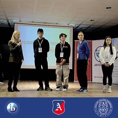 10.sınıf öğrencilerimiz Zeynep Cemre Divanoğlu, Çağan Özcan ve Doruk Çerçi ile 9. sınıf öğrencimiz Beril Tekgöz, hem bilgi birikimleri hem de özgüvenleriyle takdir topladılar. Gün boyunca öğrenmenin, üretmenin ve paylaşmanın gücünü bir kez daha deneyimledik.